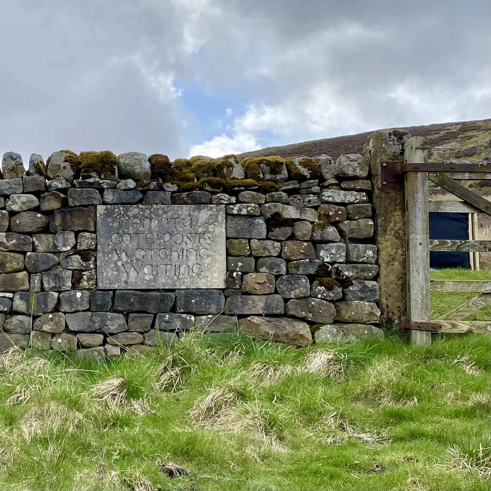 At Grimwith Reservoir, in the Yorkshire Dales, there are snippets of poetry inscribed in stone, and incorporated into the dry stone walls, including this one, which says: ‘Empty Gate Posts, Watching, Waiting’…They’re the result of workshops run by creative writer Alice Maddicott as part of 60th anniversary celebrations for the National Parks, and they’re carved by local artist, Fiona Bowley. I often think about poetry when I’m painting, and use snippets for titles….this might be an interesting starting point??