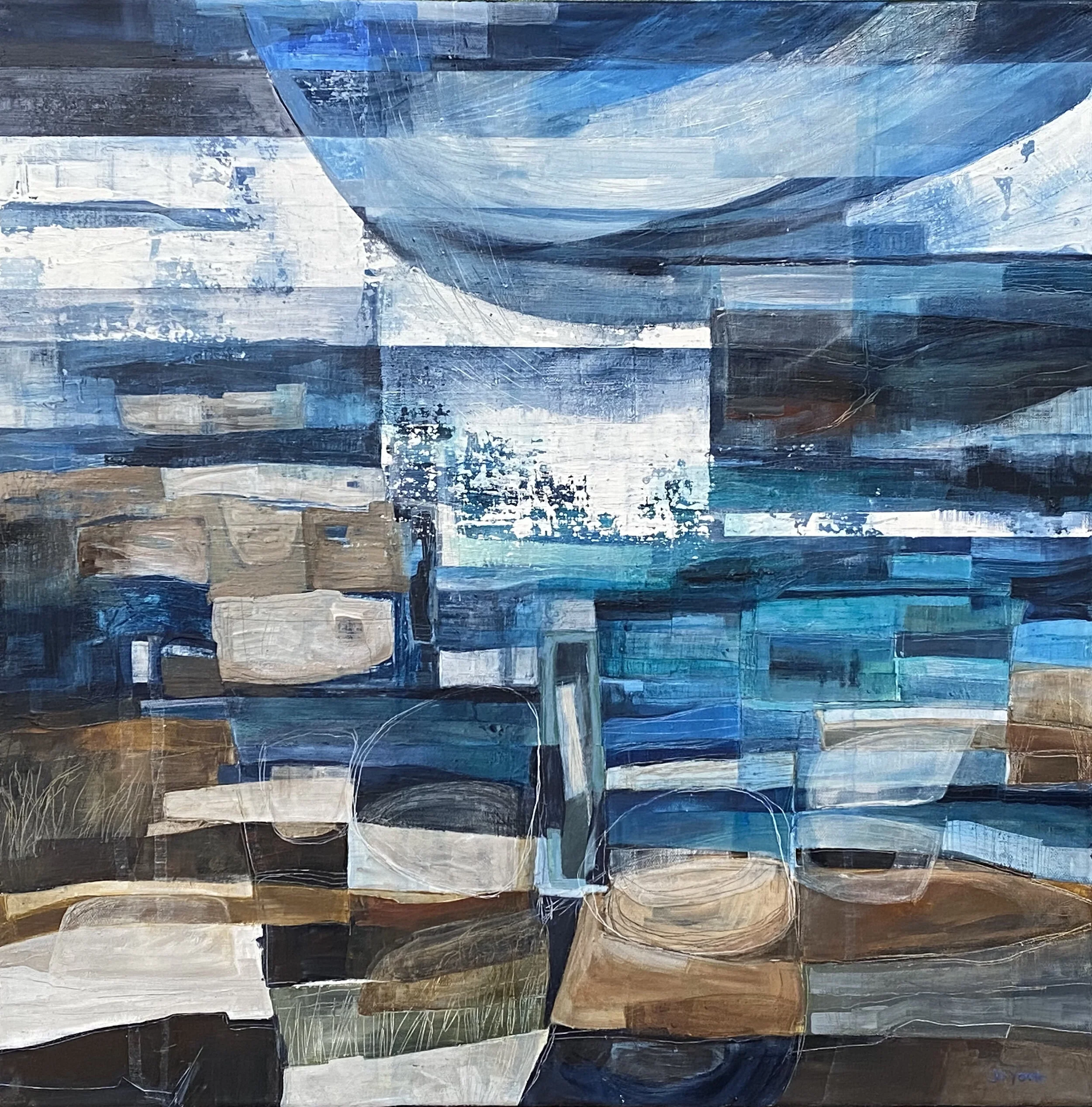 Rhythm of Rocks and Water….full of textured layers, and evoking the rocky North Atlantic Coast of Cornwall, with dramatic sky and breaking foam.