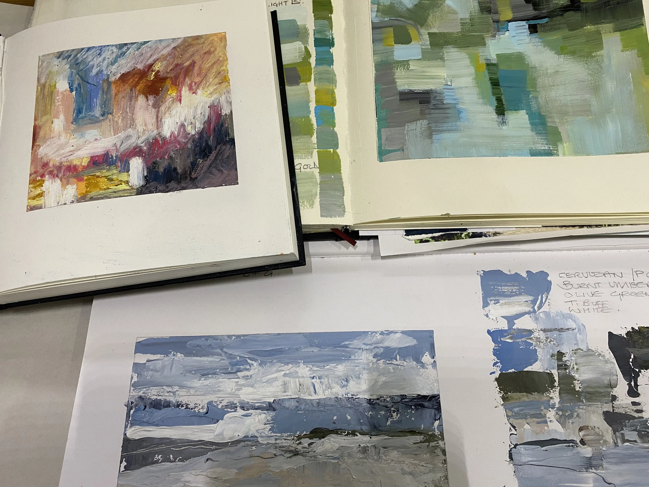 I’ve been trying to have a quiet, reflective month; making small studies in sketchbooks, playing with colour combinations and swatches, and generally mulling over ideas for new work….there is a distinct rhythm to making art, it needs and takes time, and I’m learning to be more patient of the thinking stages…well I’m trying at least!