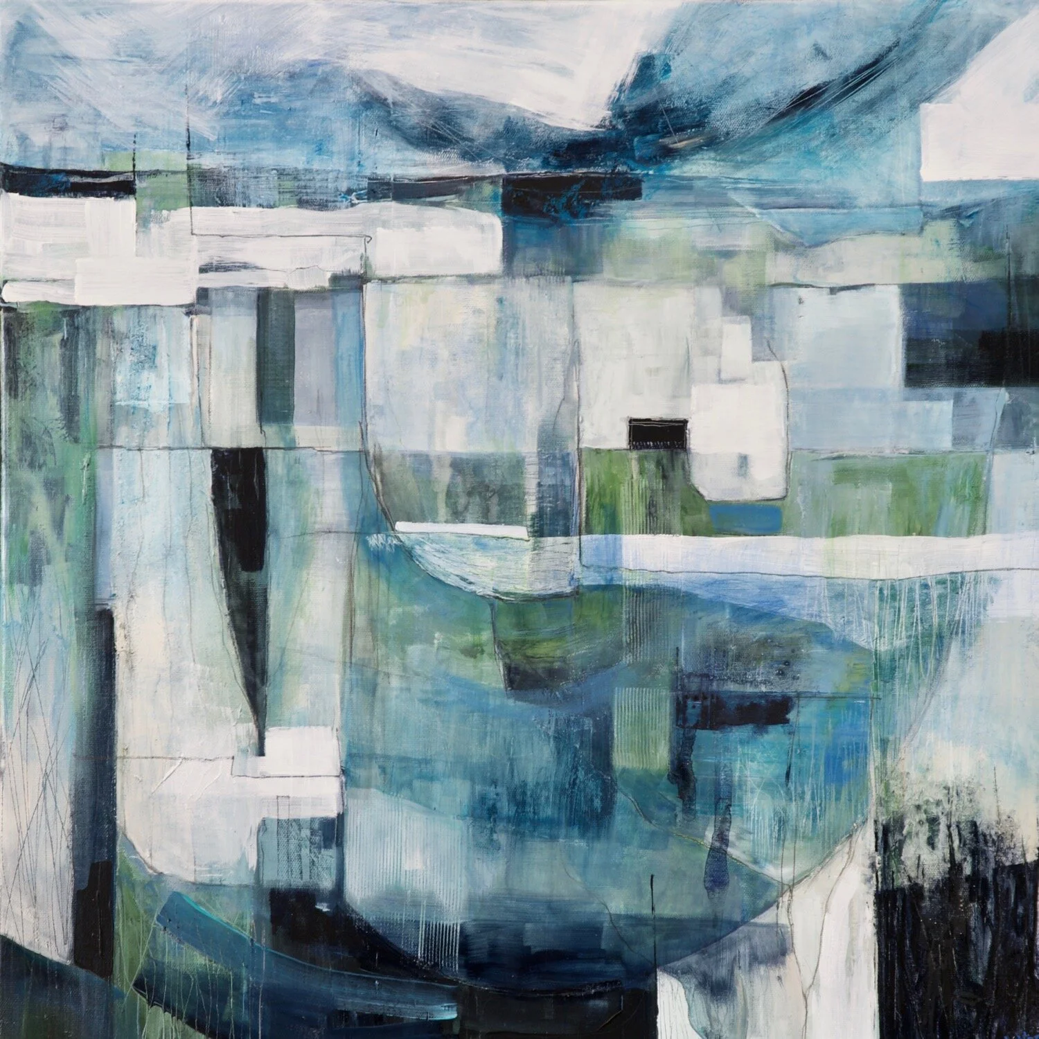 I ended up working on three initial canvases, and may well return to the series later. Working on them has been a slow and painstaking process of building up translucent watery glazes in many layers.