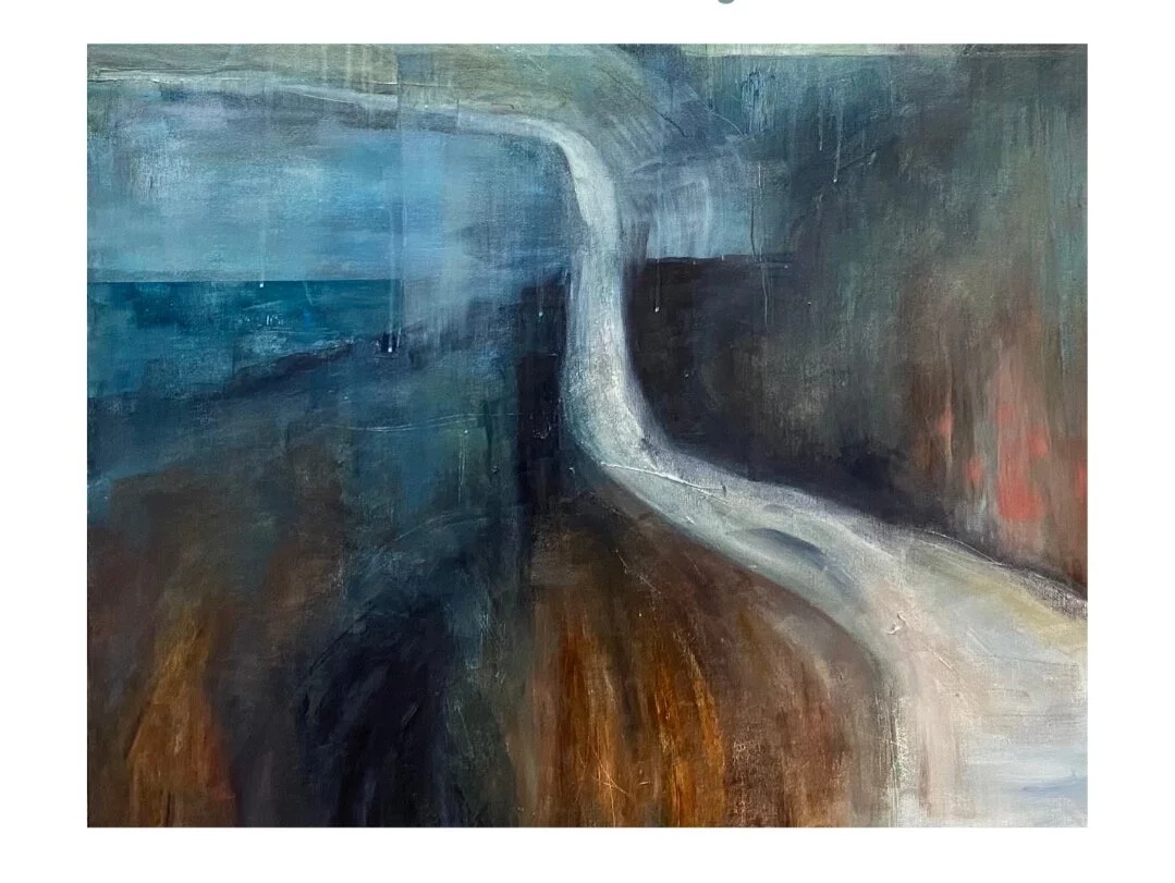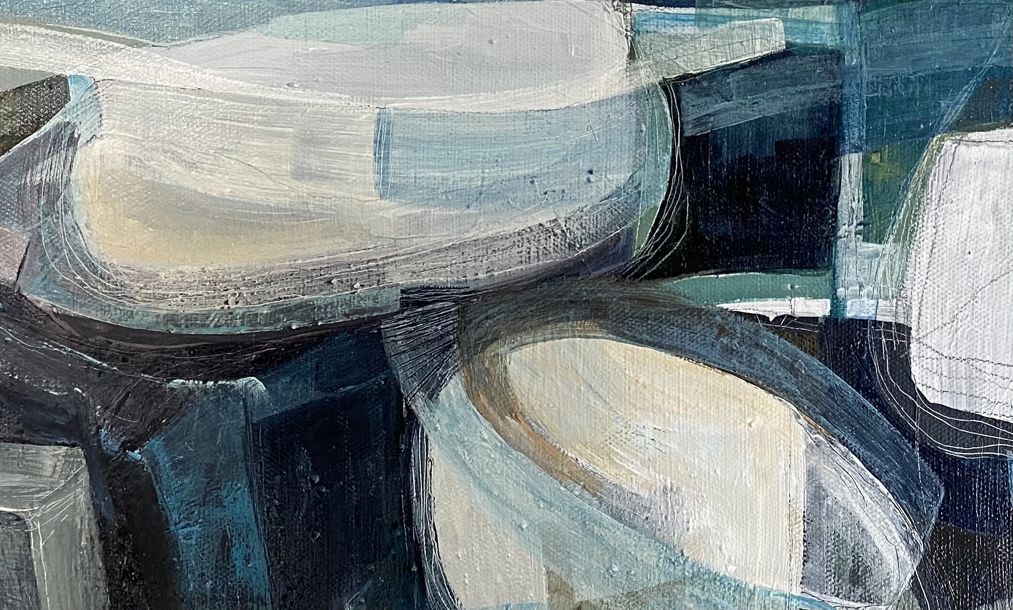 Blue Zawn incorporates a couple of viewpoints, looking over the edge from the cliff above. I’m trying to suggest the steep craggy cliffs, the movement of swirling water, and the rhythm of boulder shapes below…I hope you like it!