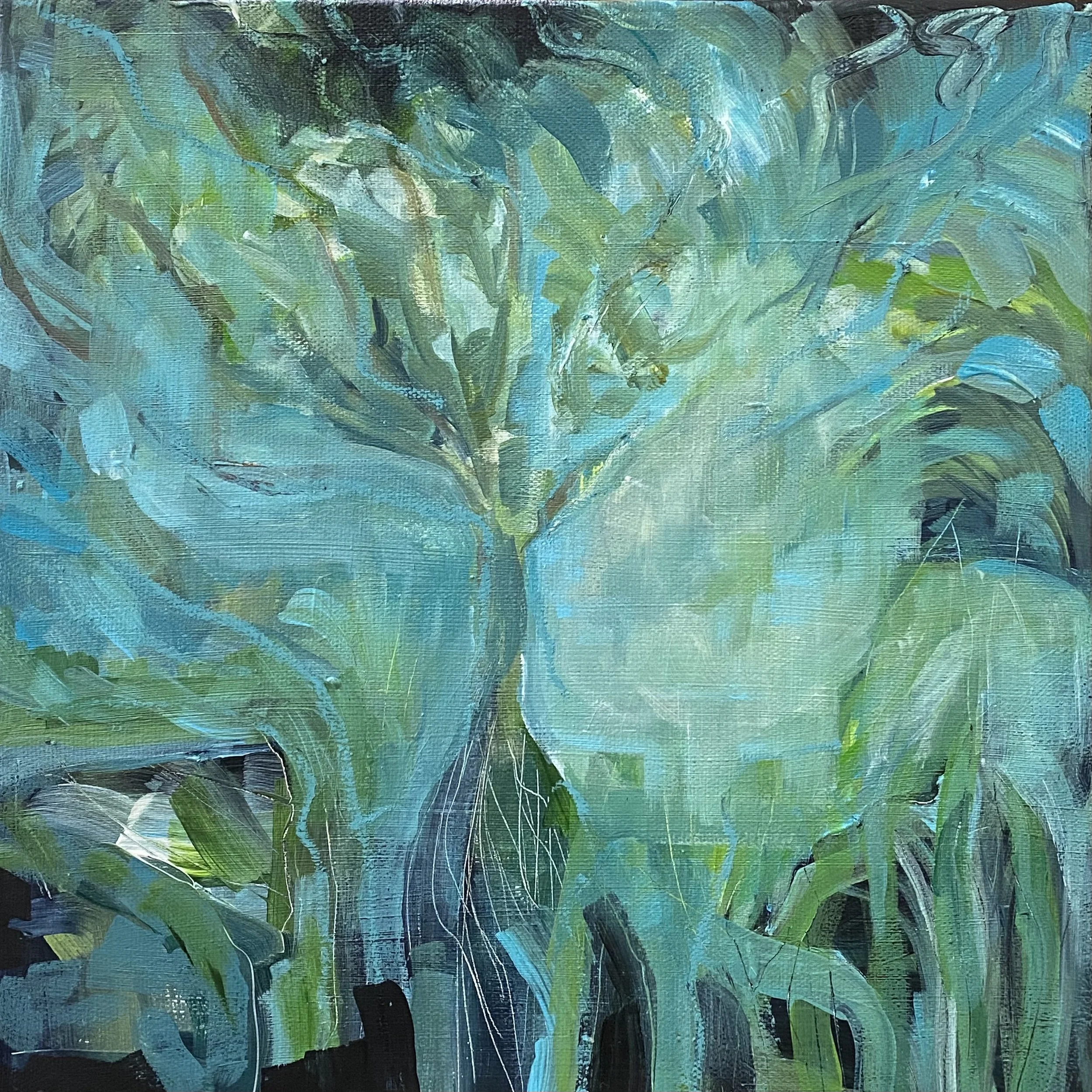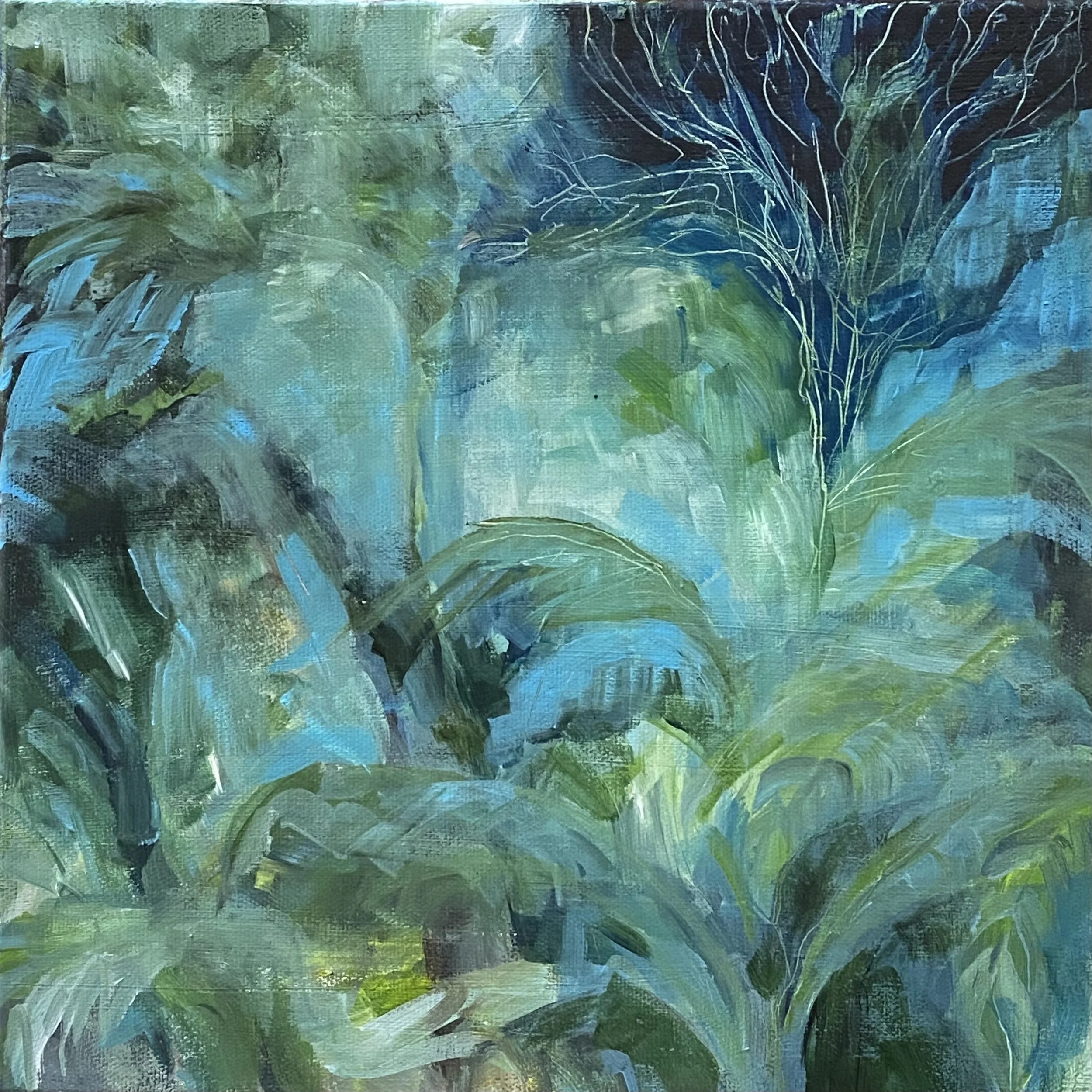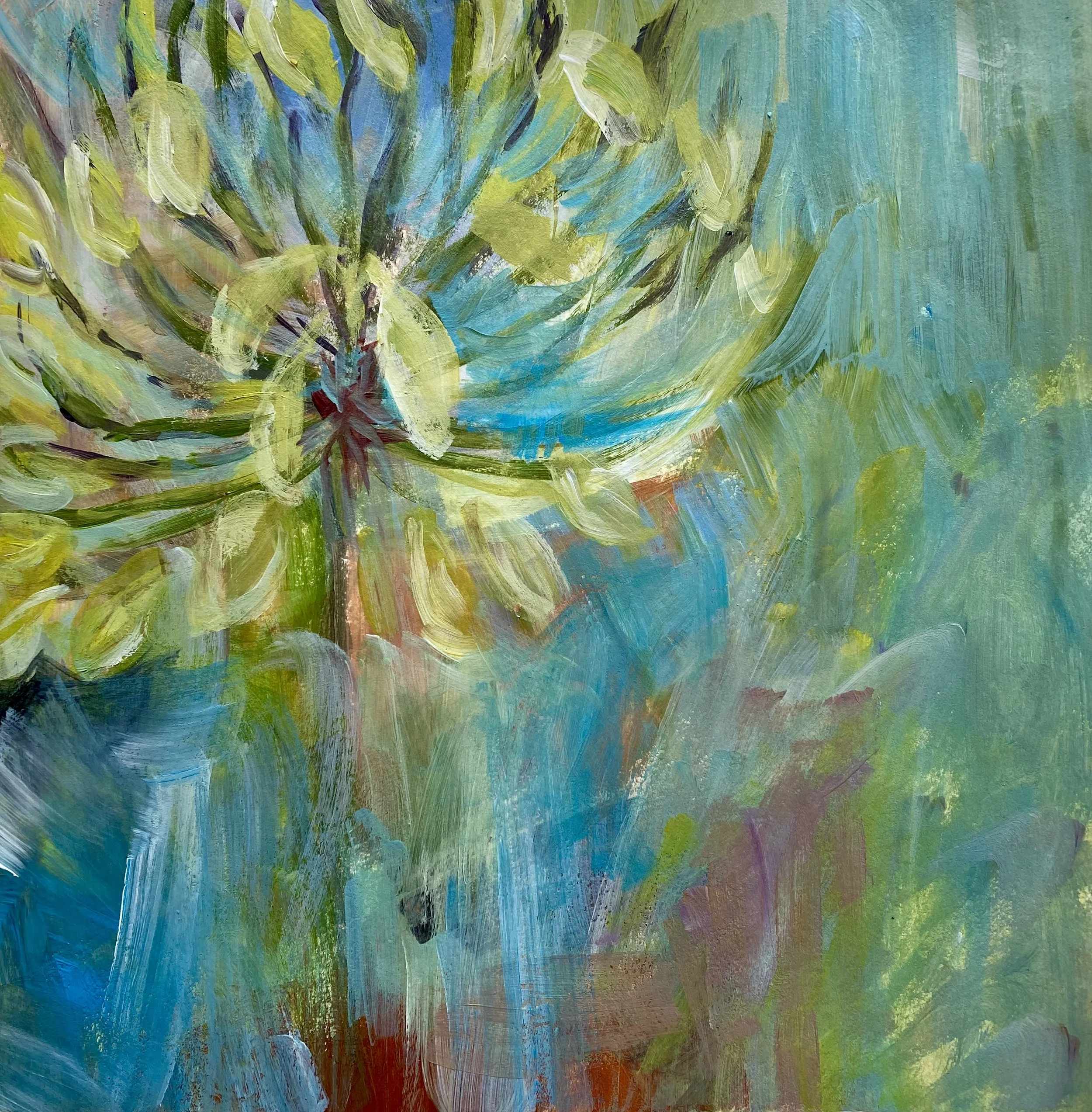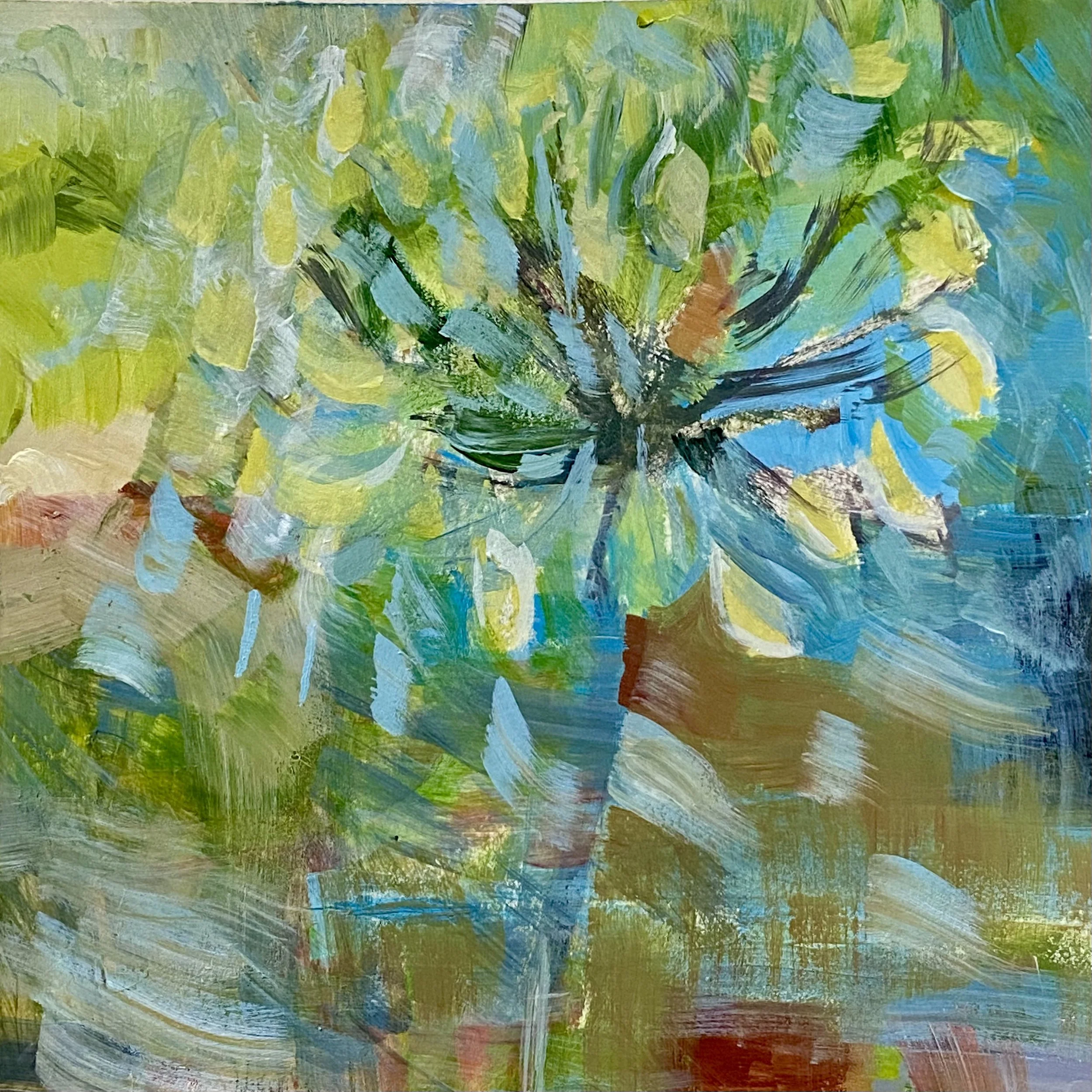 They have loads of layers, and I’m really pleased as I hope I’ve managed to keep a sense of movement and freshness…I really wanted drama and looseness in the brushstrokes, and a spontaneous feel. The group of paintings below ⬇️ are 30cm square canvases, with a similar feel, and the bottom two are still abstracted, but close ups of seed heads found in the gardens.