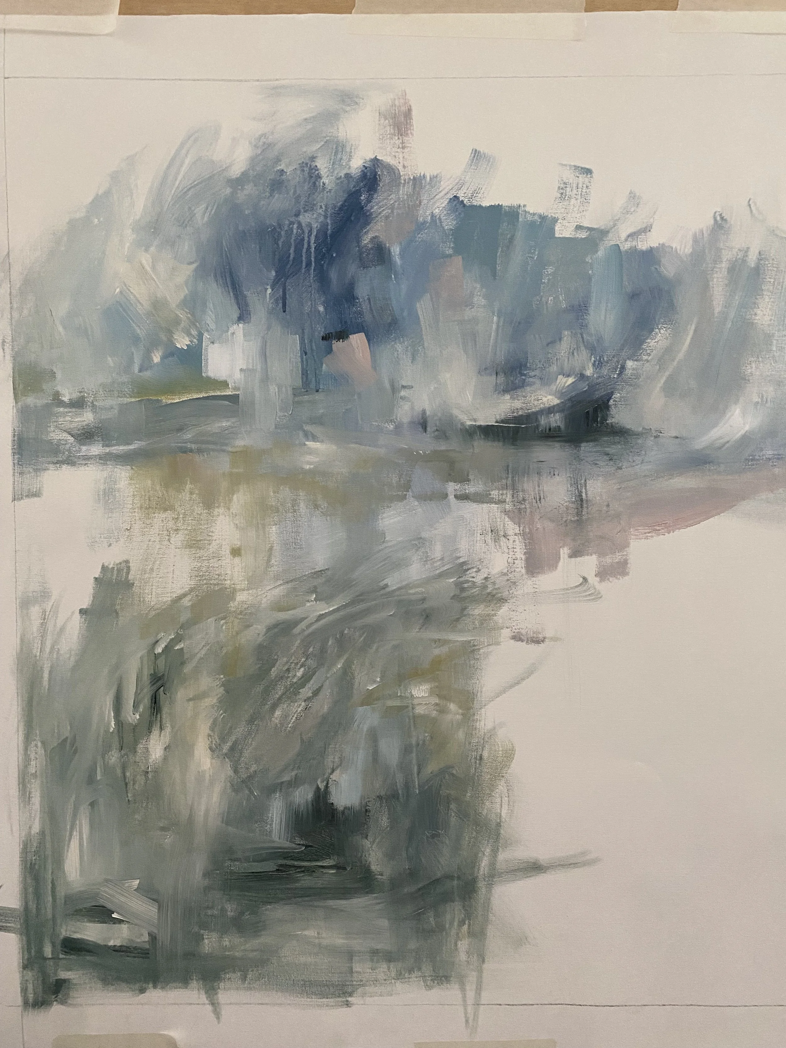 The idea to make a painting based on the pond came in a rush, and unusually didn’t mull around in my head for ages. It’s painted with opaque base layers, overlaid with translucent glazes and loads of drawn detail- just finished and ready for waxing.