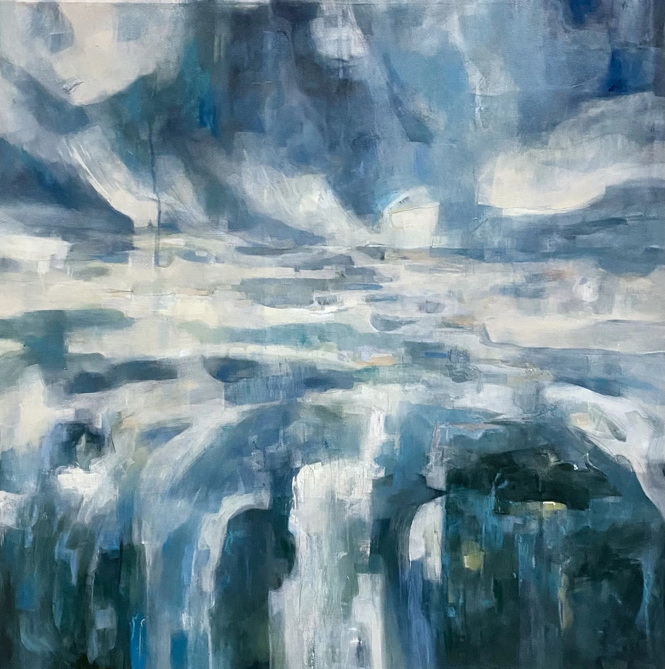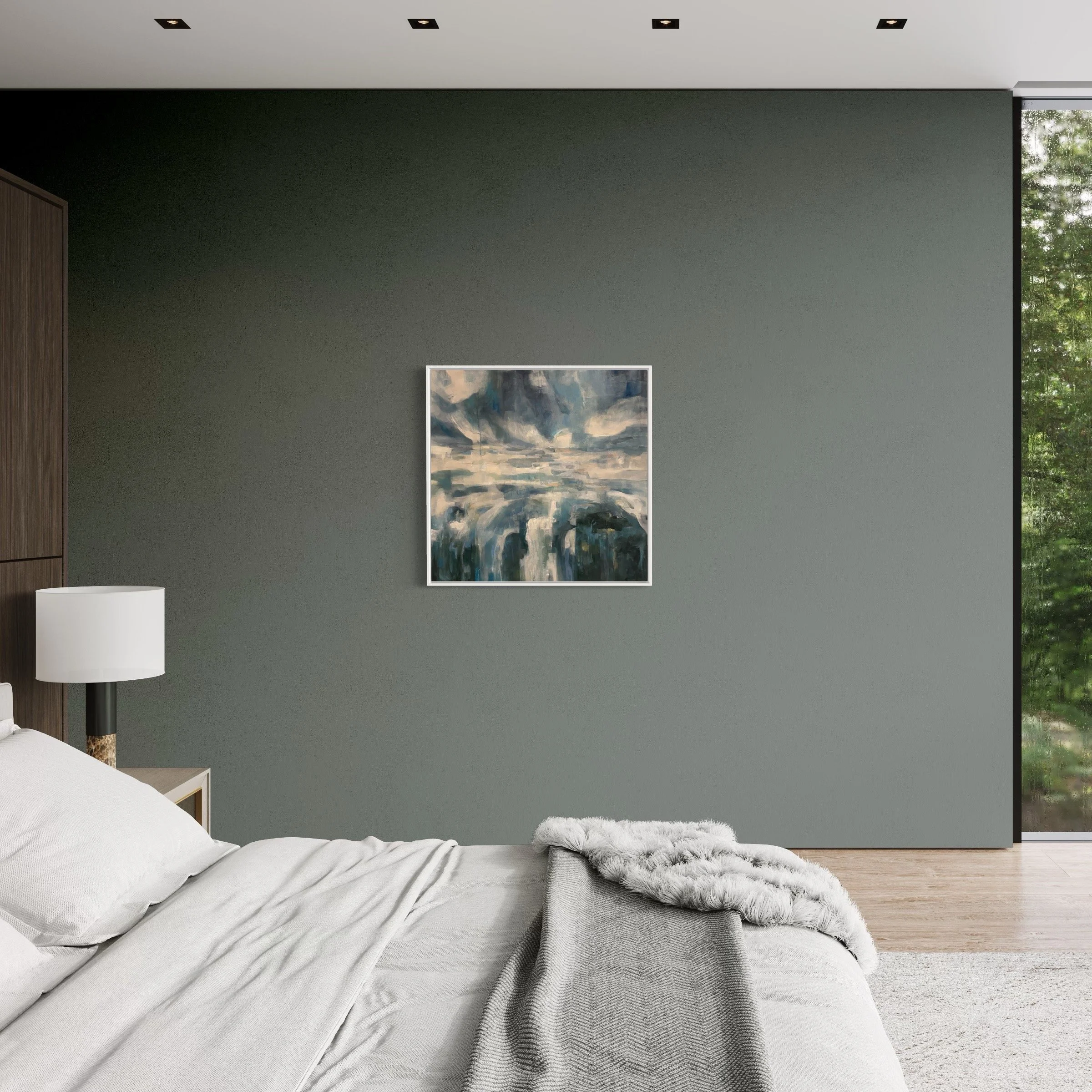 The Hidden Pool is a metre square on a deep canvas, and will be framed in a bespoke hand painted tray frame.