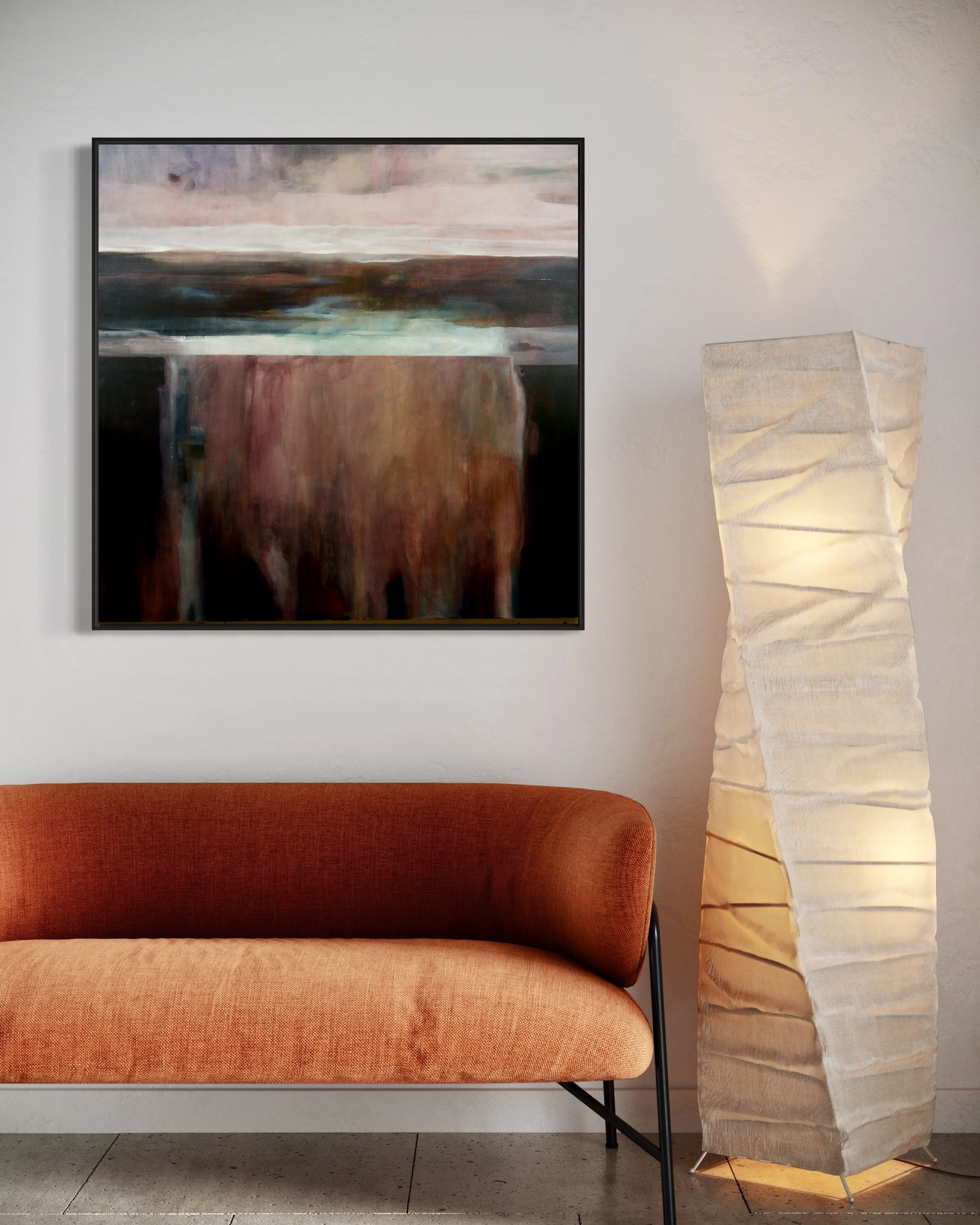 What I can tell you is that it is a statement piece, I think it brings real warmth, and a touch of drama too…plus it’s a metre square so it definitely has impact….it will be off to a gallery soon, so message me if you’d like to get in quick! I like the in situ shot below, but I’m still thinking about framing…dark like this, or lighter? Tell me what you think.
